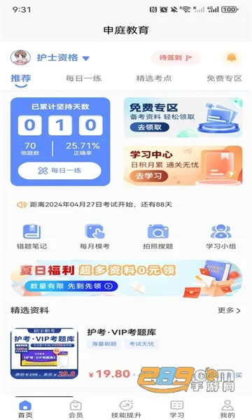 申庭医考app是线上医考教育平台,针对护士执业资格考试研发。有海量题库、视频教学,功能丰富,如错题记录、模拟考试等。题库实时更新,还有专业解析、智能评价,支持个性化计划与错题重练,助力高效备考。