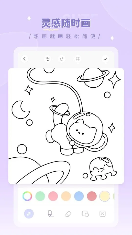 它的素材丰富多样,有超多软萌可爱的线稿,涵盖多种主题,能营造轻松愉悦的创作氛围。其功能十分贴心,自由创作与涂色搭配多样填色色板,支持轻触填色,趣味头像制作可自由调整发型等打造个性头像。