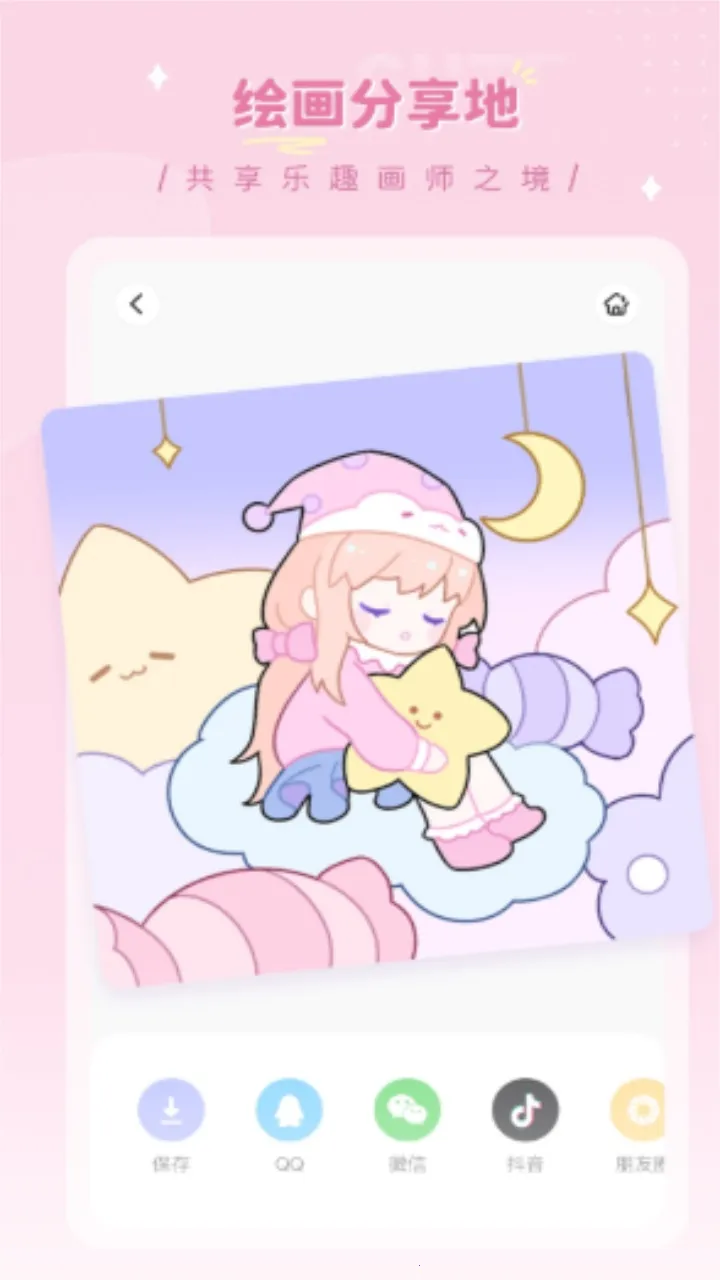 4、用户保存创作的绘画作品后还可以将它分享给好友或社交平台。
