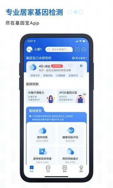 基因宝2026官方正版是北京拉索生物科技有限公司研发的基因检测软件。用户提供1ml唾液样本,72小时内可通过APP查看结果。能帮了解基因对健康生活的影响,提供权威可靠的个人定制检测与健康管理服务。