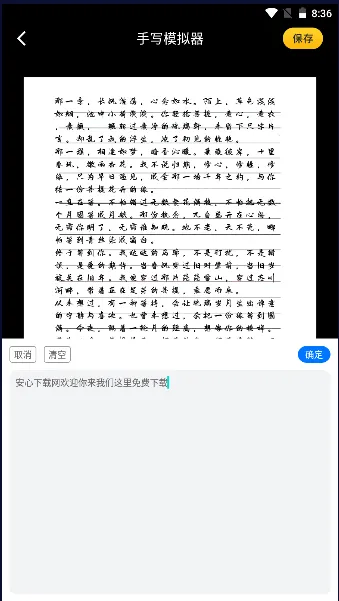手写模拟器最新手机版是一款强大的手写字迹模拟软件。能将文本转换为逼真手写效果,支持多信纸主题、字体选择,可自由设置字间距等参数。操作简单,几步就能生成手写稿,适用于写检讨书、道歉信等,免费无广告。