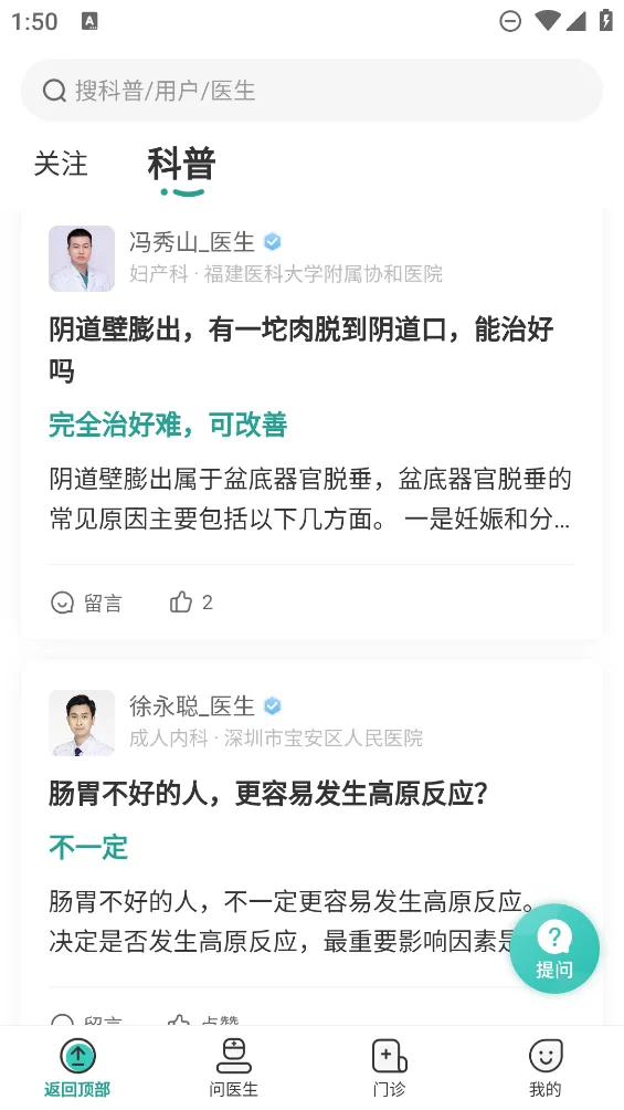 2. 入驻权威医师,便于用户随时随地问诊,能及时获得专业的医疗建议,解决健康问题。