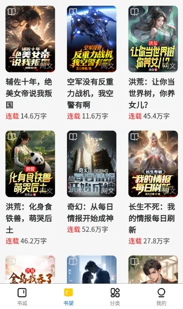 3、点击书架,你想看的小说都可以加入书架