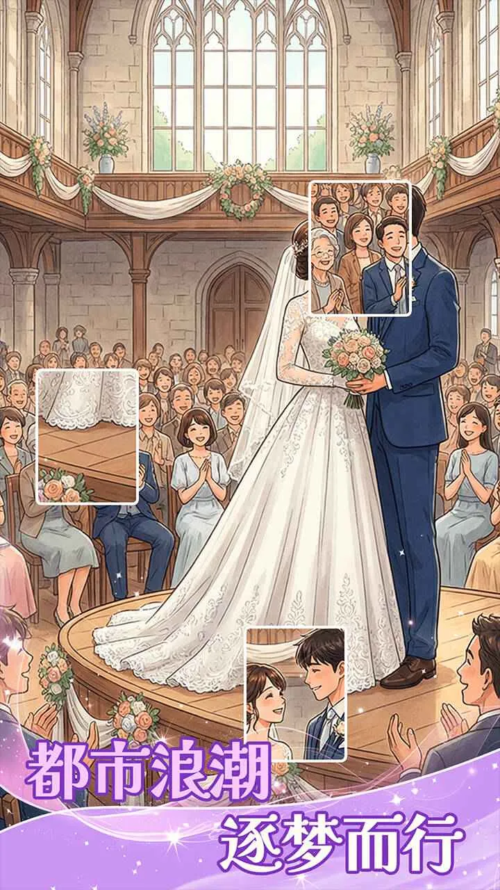 游戏玩法简单易上手,在规定时间内拖动碎片拼成完整图片即可。六大篇章涵盖现代、宫廷、修仙等多种主题,满足不同人生幻想。随着篇章深入,拼图难度递增,趣味性十足。