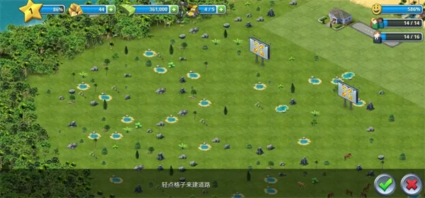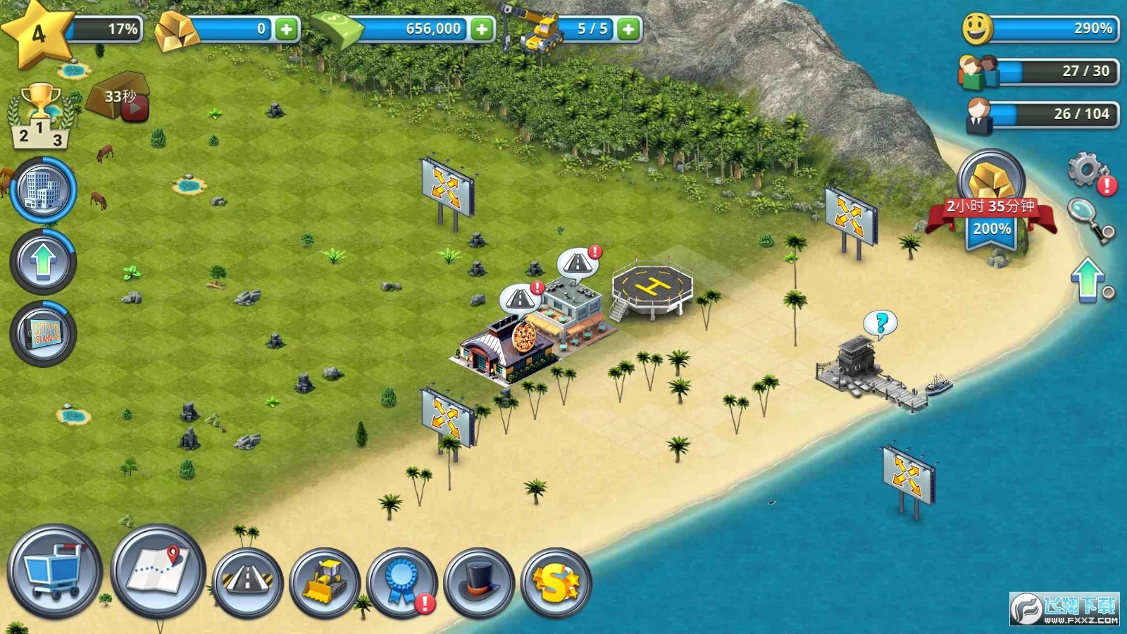 4. **提升幸福指数**:采用地区解锁方式,升级解锁不同岛屿,城市能建在旅游天堂岛、火山岛、沼泽地、沙漠等。注意建设公园、河道等美化区域提升居民幸福指数,关系到经验与奖励,合理规划让城市更具魅力。