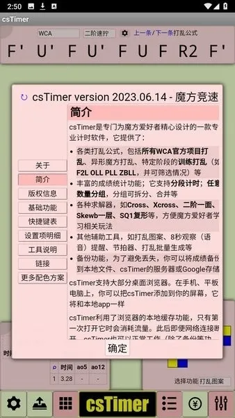 4. 具备很多同类软件常有的功能,如 wca 规则中的 15 秒观察、启动前长按空格等,满足用户多样化需求。