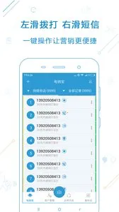 电销宝是一款超棒的电话销售办公软件,专为电销人员打造。它功能强大,能帮你轻松搞定很多电销难题。智能拨号一键搞定,支持自动拨号和挂机检测,大大提高通话效率。通话自动录音存档,保障通话质量和客户信息安全。任务管理可创建与分配任务,跟踪进度,事项不再遗漏。业绩实时统计,直观展示趋势。团队成员能共享信息,协同完成销售目标。还有智能回访,设置闹铃客户一个不漏。智能备注能把客户情况记清楚。业界交流可分享经验,探寻行业新发展。拨打统计让你清楚了解自己工作情况。支持多种导入方式,操作简单便捷。有了电销宝,电销工作更高效,业绩提升不是梦,赶紧来试试吧!