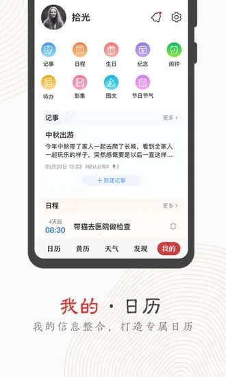 中华万年历正版是综合性日历工具,以农历和黄历文化为基础,提供宜忌节气等信息。整合天气、事件记录与提醒等功能,界面极简高效,工具丰富,支持多端同步,还有社区与个性化内容,免费又实用。