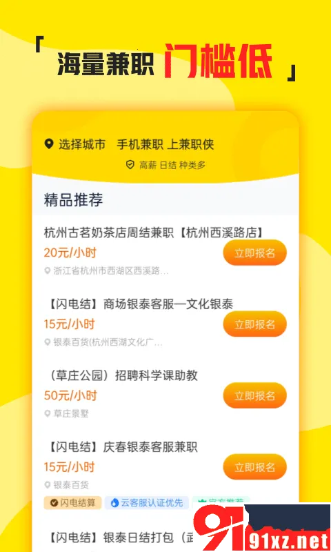 在物价飞涨工资却不涨的当下,很多人都想通过兼职赚外快,可又愁找不到合适的兼职。兼职侠app就能帮你解决这个难题!它是杭州弧途科技有限公司打造的专业手机兼职软件,适合学生、宝妈、自由职业者等各类人群。这里有海量兼职岗位,涵盖多行业多岗位,能满足多样需求。所有信息严格审核,杜绝虚假诈骗,保障真实可靠。在线申请超便捷,随时随地手机操作就行。还有日结工资岗位,支持即时到账,解决资金周转难题。线上线下兼职形式多样,智能推荐系统会根据你的兴趣和技能推荐合适岗位。有了它,你在家就能轻松兼职赚钱,告别找兼职的烦恼,感兴趣的话就快来下载体验吧!