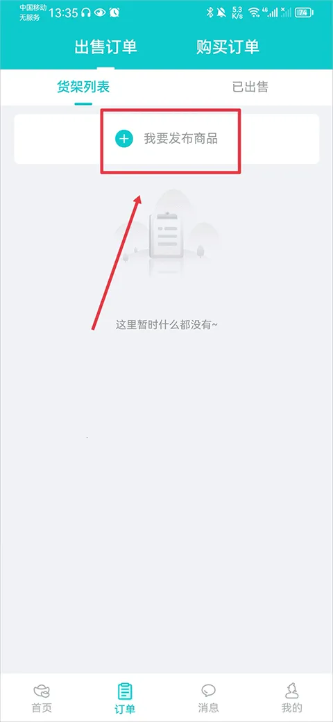 1、打开app,在订单界面的货架列表中点击“我要发布商品”