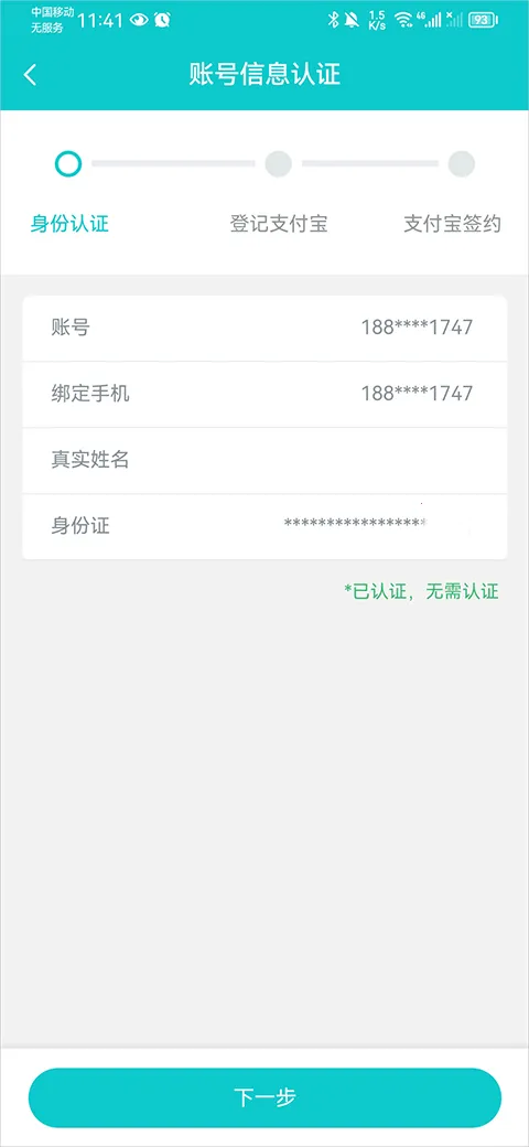 2、按照指引完成账号认证步骤