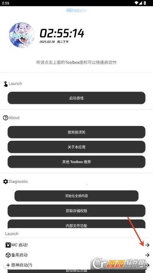 1、先进入软件并点击启动,选择mc启动