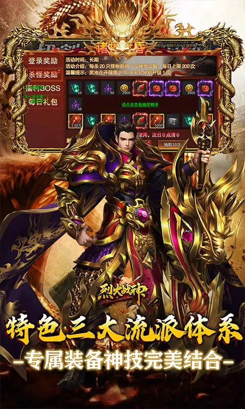 3、流派与装备独特:三大流派搭配上百种专属装备,有组合套装,不同成长体系,单独的流派神级技能,玩家可自己掌握发展线路。