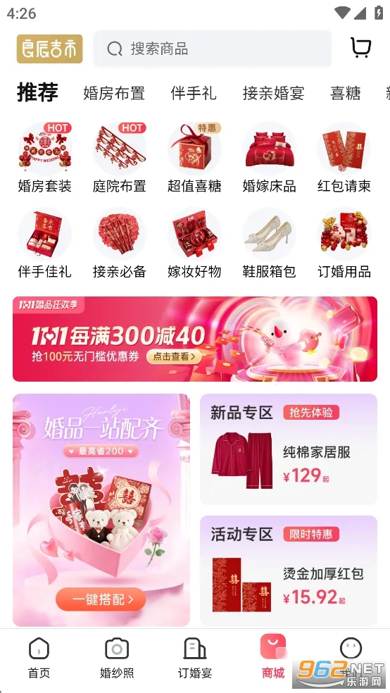 海量资源:全国超20万家品牌商家入驻,覆盖400多个城市和地区,10万套婚纱款式,精选百万婚品,无论是婚礼服务还是婚品购置,都能一站式满足。