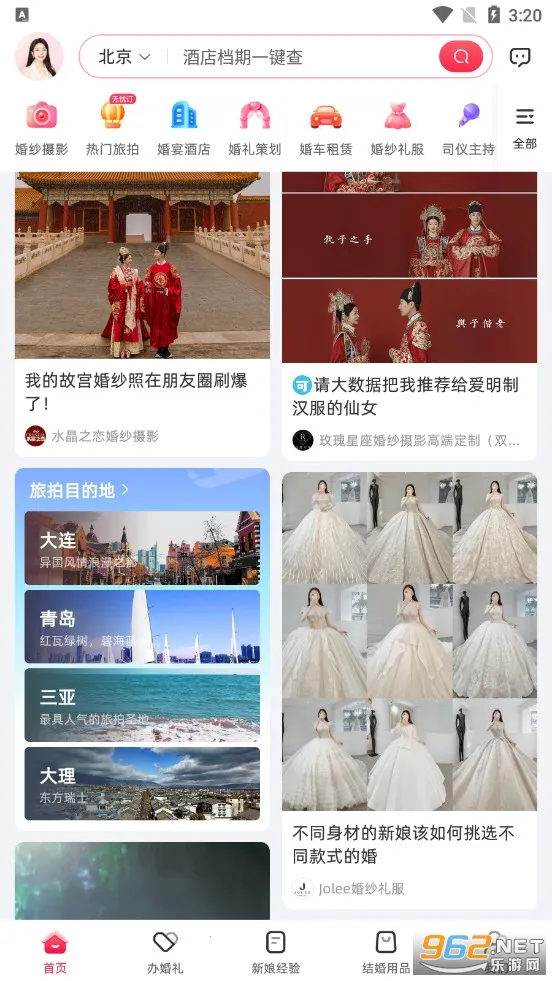 婚礼纪是国内领先的婚礼一站式服务平台,超20万商家入驻,提供婚庆策划、婚纱摄影、婚宴酒店等服务。有海量备婚攻略、优质案例,还能制作电子请帖等,帮新人轻松筹备婚礼,让结婚变得简单。
