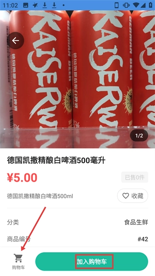 进入商品详情页面后,点击【加入购物车】按钮把商品添加到购物车,之后再点击左下角的【购物车】图标完成购买操作。