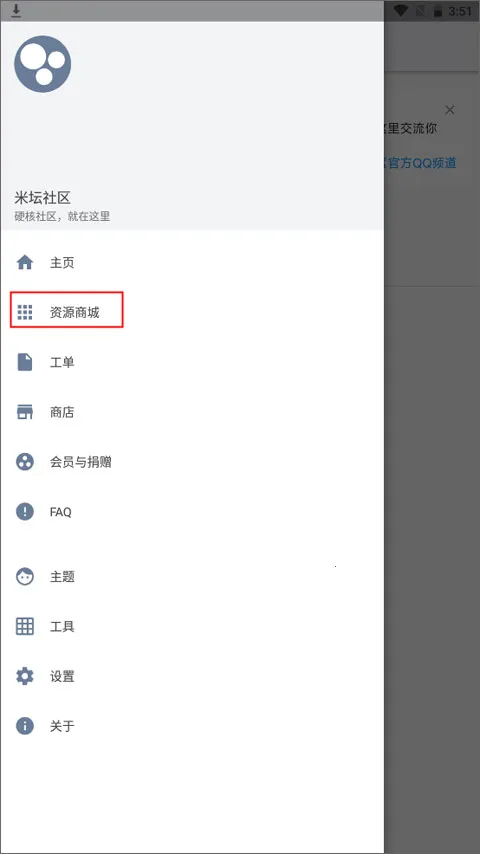 1、在下载资源包之前需要登录账号,然后再次点击左上角的三横图标并点击资源商城。