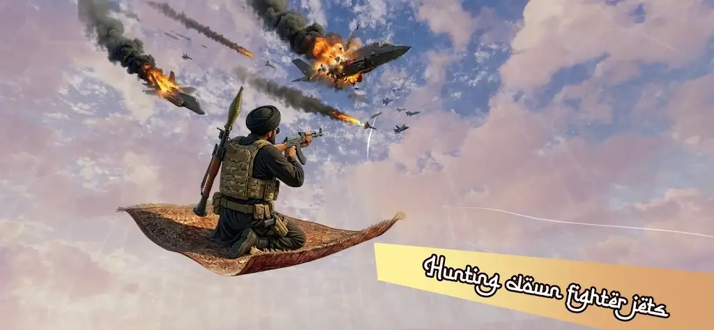 1. 独特战斗体验:游戏将战场设定在开放的空中空间,带来不同于传统陆地战斗的全新体验。玩家骑乘魔法飞毯,与敌机及高科技现代战斗机对抗,下方广袤荒漠增添环境压力,失误便可能坠落地面。