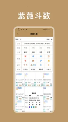 紫微斗数八字排盘 2026 官方最新版本,是融合传统命理与现代技术的专业排盘工具。为命理爱好者、研究者及好奇者服务,涵盖多种核心功能,界面简洁,参数可调,支持出生时间等自定义排盘。