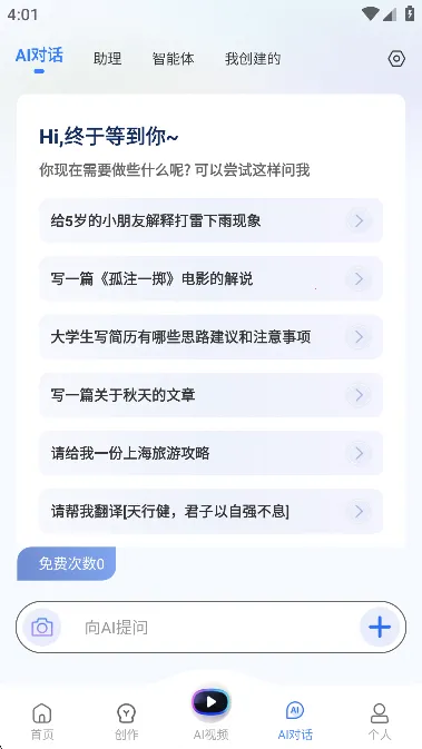 AI写作猿是一款超棒的全能型AI助手。它能帮你解决不少难题,像生活里的麻烦、学习上的困扰、工作中的问题等,都能给你提供解决方案。它有好多实用功能,输入关键词就能一键智能创作,还提供丰富模板,能改写、续写、扩写文案并生成摘要,给你创意灵感,助你轻松写作。AI视频一键生成,输入语言指令就能自动生成各种风格视频画面。它还是你的百科全书,各种问题都能解答。另外,创建智能体可自主设定人物角色,输入画面描述能一键生成精美AI绘画图片。热门创作里的AI校对、图文创作、长文本写作、文章仿写等功能,能满足各类写作需求。有了它,无论是写作还是解决各种难题都方便高效,要是你之前在荣耀商城用过它,现在下架了也别担心,赶紧来下载体验它的强大功能吧!