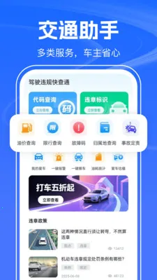 123交规免费查是车主交通法规查询工具,能精准便捷查违章法规与限行信息。可查违章代码含义及处罚,还能了解主要城市限行政策与日期,为行车提供实用法规支持。
