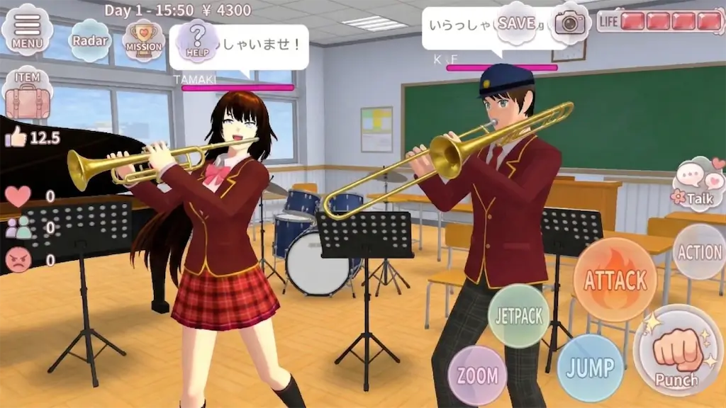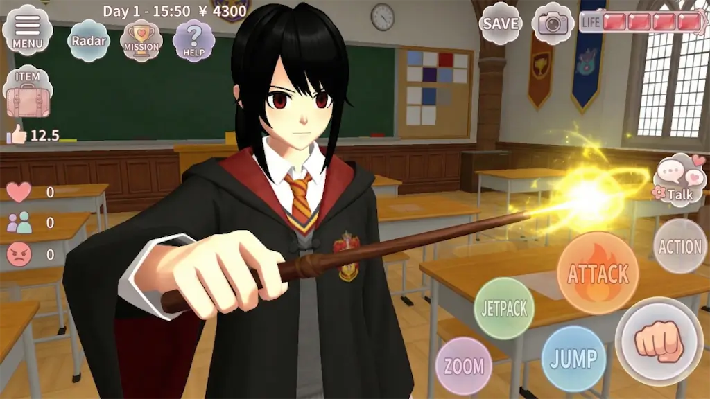 1. 极致自由探索:能驾驶豪华跑车穿梭街头,背着喷气背包飞跃校园上空,发现角落。服装发型饰品丰富,可解锁搭配专属造型,展现独特校园时尚风采。