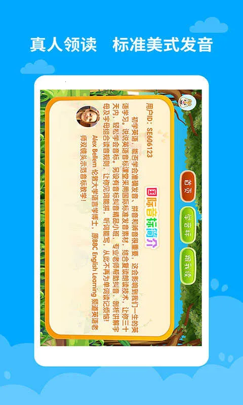 1. 专业权威:由北美语言专家精心录制真人领读模块,提供2000多个标准美式发音范例,课程体系全面覆盖48个国际音标及300余种常见字母组合,教材内容由剑桥大学语音学团队参与研发。