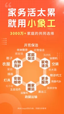 小象工是一站式本地生活服务平台,能提供上百种生活服务,像保洁清洗、管道疏通、安装维修、搬家搬运等。它有300万认证服务人员在线接单,累计服务3000万家庭,专业靠谱。