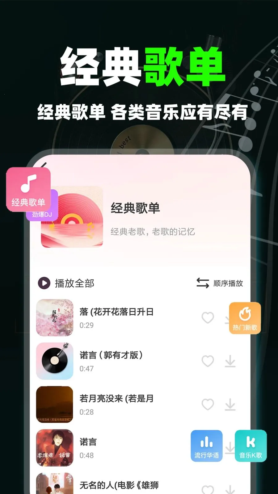 1. 海量歌曲随心听:聚合多品类音乐资源,曲库实时更新,每日上新热门歌曲。联网就能畅听,无需额外下载,轻松解决车载听歌难题,适配不同年龄段用户喜好。