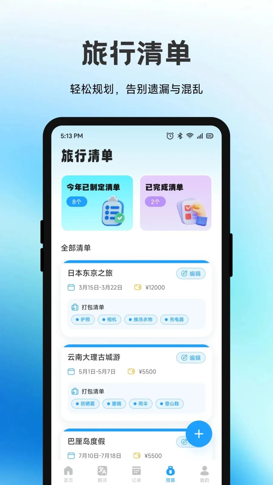 3. 智能旅行清单告别遗漏:帮助整理好旅行所需物品,避免因遗漏重要物品而影响旅行体验,让准备工作有条不紊。