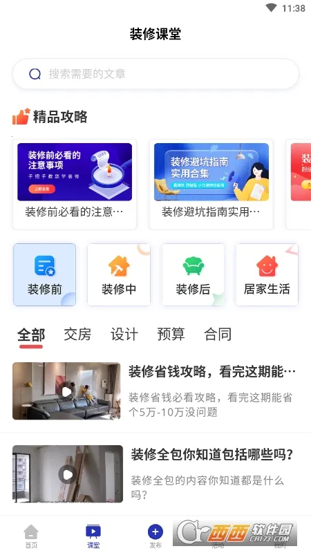 3. 知识多样:装修课堂汇集装修各环节知识,海量装修视频全方位解说装修步骤等,让您装修不迷路。