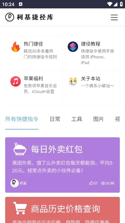 柯基捷径库是一款集成多种实用功能的快捷指令工具箱,涵盖外卖红包、打车券、商品历史价格查询等功能,还提供电视直播、壁纸更换等工具。界面简洁,操作便捷,支持自定义,能满足用户多方面需求 。