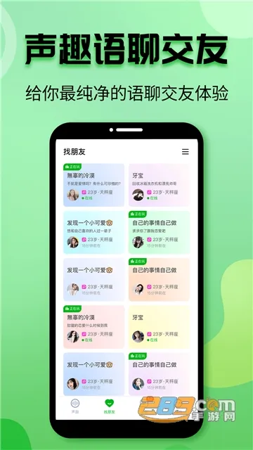 声趣语音安卓版是一款受用户喜爱的社交软件。它界面设计简洁大方,操作方便,新手也能快速上手。软件功能全面,不仅有语音交友、智能匹配,还支持多种互动方式及丰富有趣内容。