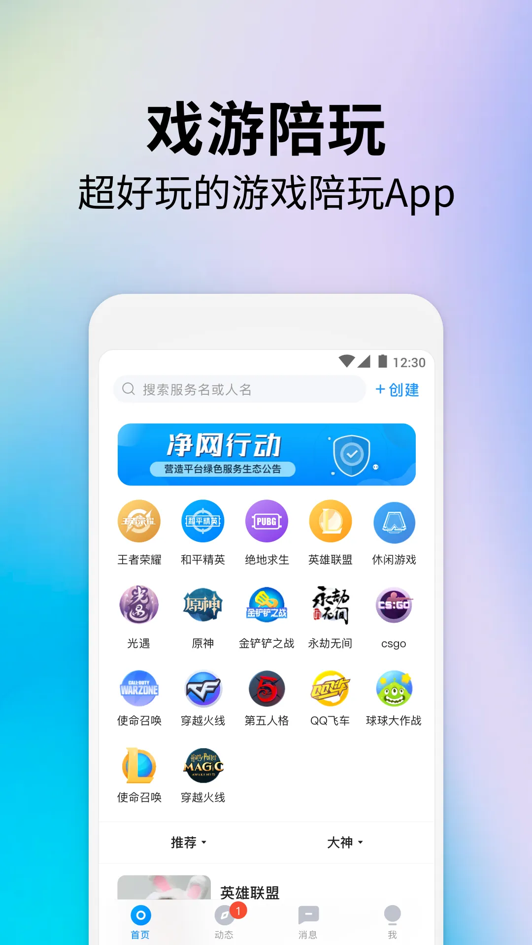 戏游陪玩 2025 官方最新版本,汇集众多游戏大神。用户能轻松下单找陪玩、关注大神动态,还可分享动态、互动社交。大神可入驻接单增收,集社交与陪玩服务于一体,修复部分 bug 。