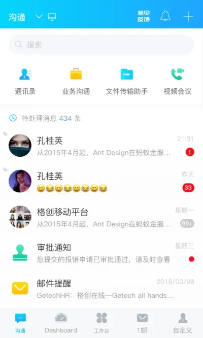 2、高效便捷:多种功能集成在一起,极大简化操作流程,像统一管理员工信息、多平台消息同步等,有效提高办公效率。