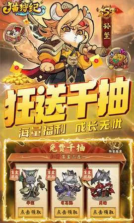 3、福利超多:每天可领取648代金券,进游送1648代金券,充值最高返还1700W代金券,签到送红色猫将。
