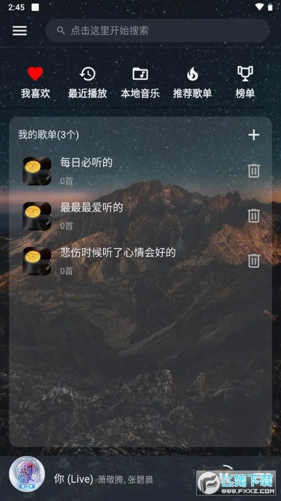 2、搜索便捷:输入歌曲或歌手名字就能快速找到想听的音乐,还有多种图表辅助搜索,数据实时更新。