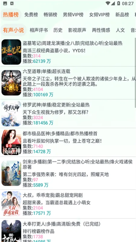 1、资源丰富:涵盖多种题材小说,还有经典图书、热门电台等,百万册正版有声书籍,覆盖多领域,满足多样听书需求。