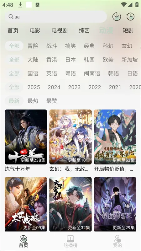 4、搜索便利:能按地区、语言、年份、热度、题材等快速筛选,也可用关键字、剧名快速搜索最新剧集。