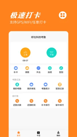 橙子考勤是橙子办公平台产品之一,专注企业考勤管理。支持 GPS 和 WIFI 打卡,打卡记录实时更新、报表自动生成。请假等申请一键完成,审批提醒微信推送,还能查看工资等信息,助力企业高效办公 。