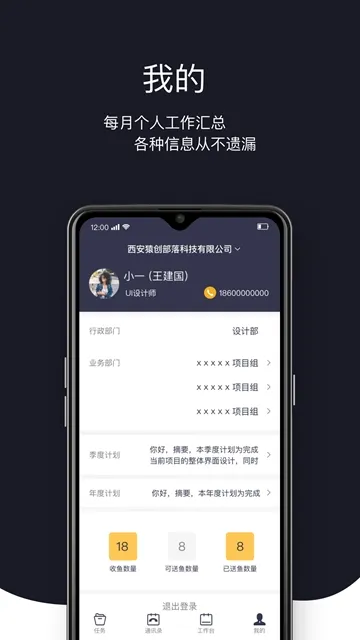 在特色方面,员工通讯录方便查看同事联系方式;工作汇总自动进行,员工随时了解办公情况;公司架构清晰展示,找同事更便捷;任务规划明确,还自动保存历史任务信息。