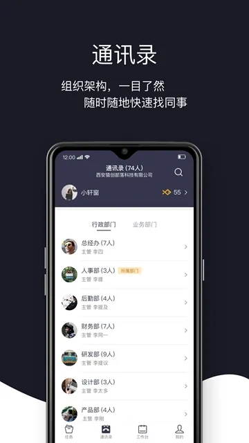 这款软件涵盖详细的企业部门和组织结构介绍,员工能快速查找其他同事进行工作交流沟通。实用的任务规划工具,可助力员工更高效完成工作任务。其数字化线上办公方式,让企业精准信息通知一键知晓。