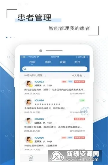 **多维度管理患者**:可查看管理门诊患者,按科室、诊断等维度分组,还能对住院患者按科室病区管理,支持临床病历浏览、医嘱管理等多种操作。