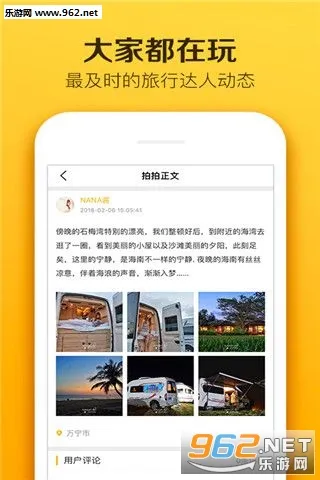 这款软件涵盖房车租赁、营地预订、跟团旅行等服务,还分享玩法攻略。用户能通过它分享美照、短视频动态,感受旅行达人的自驾乐趣,建立自己的社交圈。