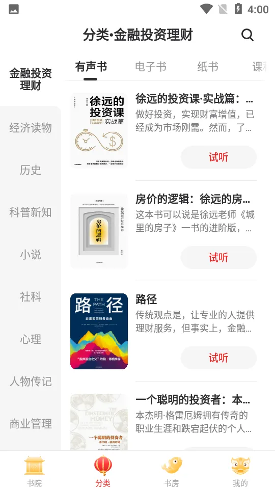 中信书院定位中高端知识服务平台。它依托中信出版社丰富资源,汇聚大量优质内容。涵盖商业财经、人文社科、科技等众多领域经典书籍、前沿研究成果等。其内容制作精良,邀请知名专家学者解读,音频、视频等多种形式呈现,提升学习体验。用户群体多为追求知识提升、注重自我成长的职场人士、创业者、知识分子等。在知识付费领域,凭借优质内容和良好口碑,树立较高品牌形象,处于中高端档次,为用户提供有深度、有价值的知识服务,满足对高品质知识学习与探索需求 。