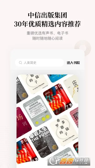 中信书院是中信联合云科技有限责任公司开发的数字阅读平台。 **依托中信出版集团**,整合其三十余年优质内容资源,提供经济管理、人文社科等多领域精选电子书与有声读物,内容权威高质量。