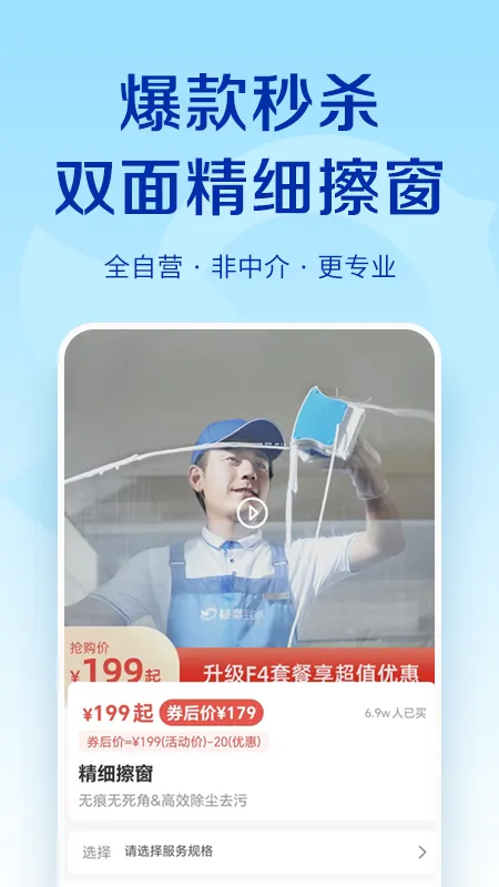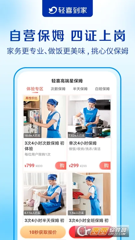 3、服务多样:涵盖保洁、保姆、母婴护理、育婴早教、产康修复、家电清洗等众多专业服务。