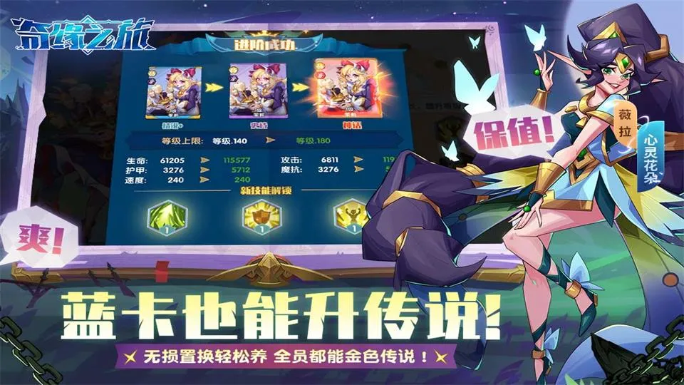 3、养成出色:打破传统无废卡设定,蓝卡能升红阶,所有卡牌可升红阶,等级共享置换养成超灵活,零氪也能有强力角色。
