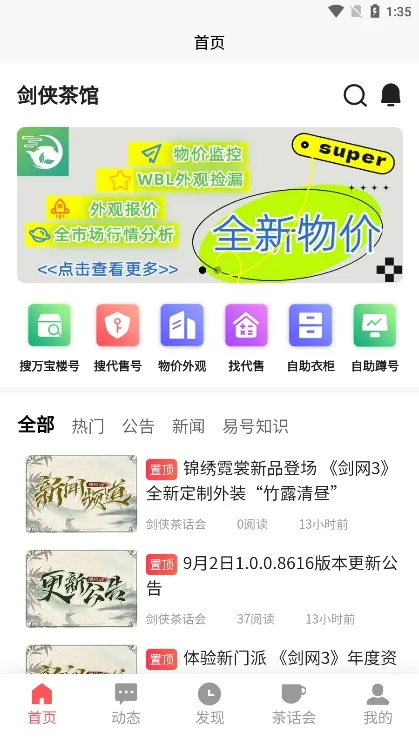 剑侠茶馆是集新闻资讯、资料查询、游戏攻略等功能于一体的游戏社区助手。提供丰富游戏资讯、实用辅助工具,支持物价查询、蹲号等。还有社交互动,可分享动态、结交伙伴,助玩家掌握游戏动态、享受乐趣 。