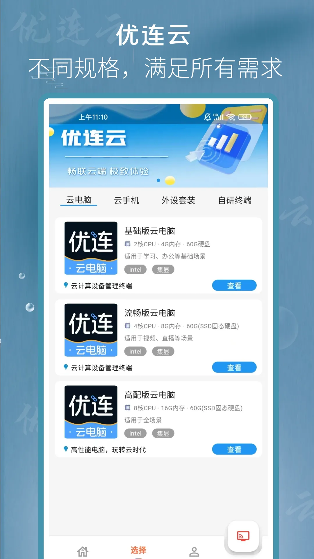 优连云电脑是集成云计算技术的管理工具,支持多设备连接,24 小时在线。能让用户轻松管理云端资源,实现远程办公、畅玩多种游戏,还提供多样规格选择,保障数据安全,满足多样需求 。